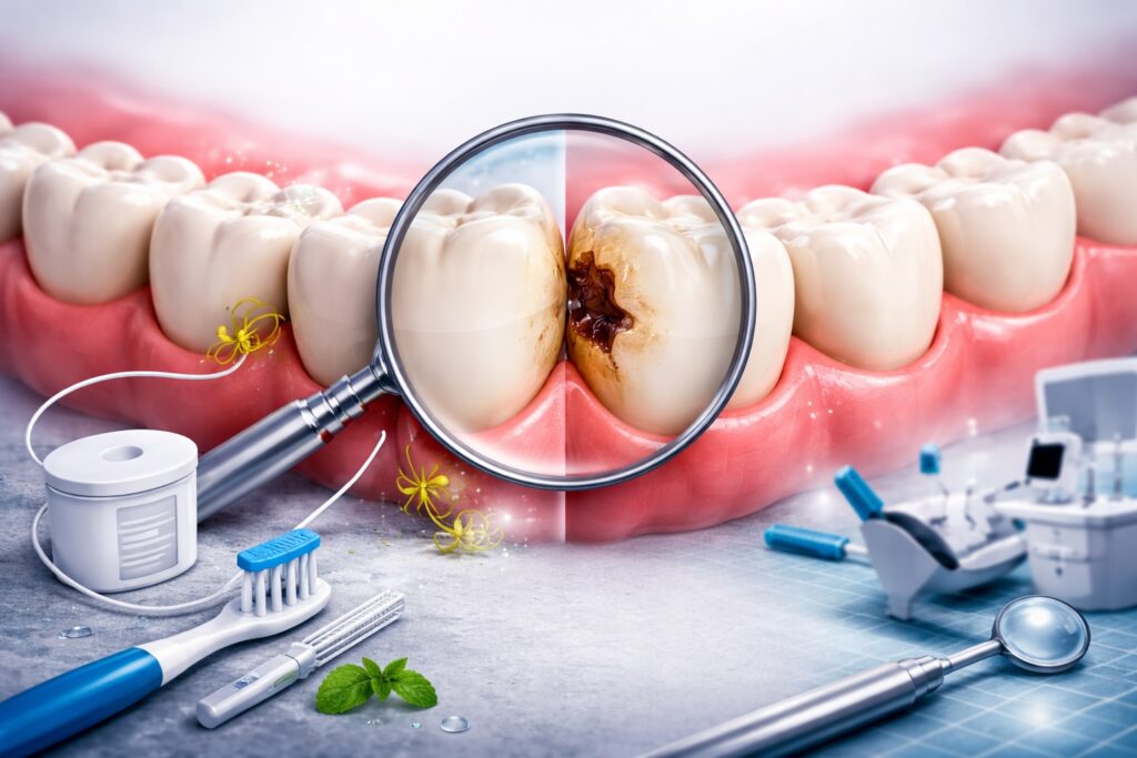 Le carie tra i denti, chiamate anche carie interprossimali, sono tra le più subdole in assoluto. Si sviluppano negli spazi stretti tra un dente e l’altro, zone difficili da pulire correttamente e ancora più difficili da osservare a occhio nudo. Proprio per questa loro “invisibilità”, spesso vengono individuate solo quando il danno è già in fase avanzata, rendendo necessario un intervento più invasivo rispetto a una semplice otturazione iniziale. Capire perché si formano e perché è così complicato accorgersene è il primo passo per prevenirle in modo efficace.